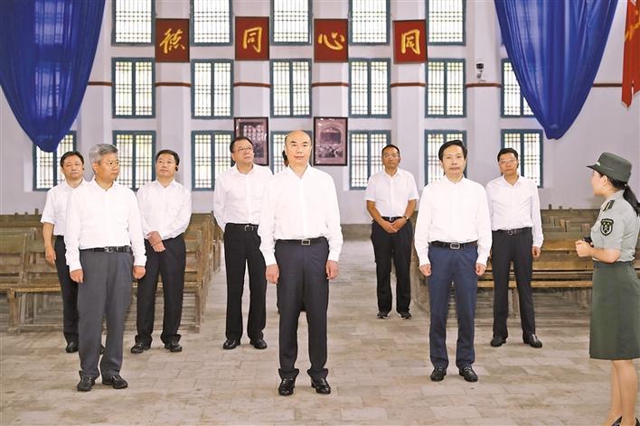 八月四日,省委书记刘国中、代省长赵一德到延安调研。图为在杨家岭革命旧址,刘国中、赵一德重温党的七大将毛泽东思想确立为党的指导思想并写入党章、形成以毛泽东同志为核心的第一代中央领导集体的光辉历史。 记者 张辰摄