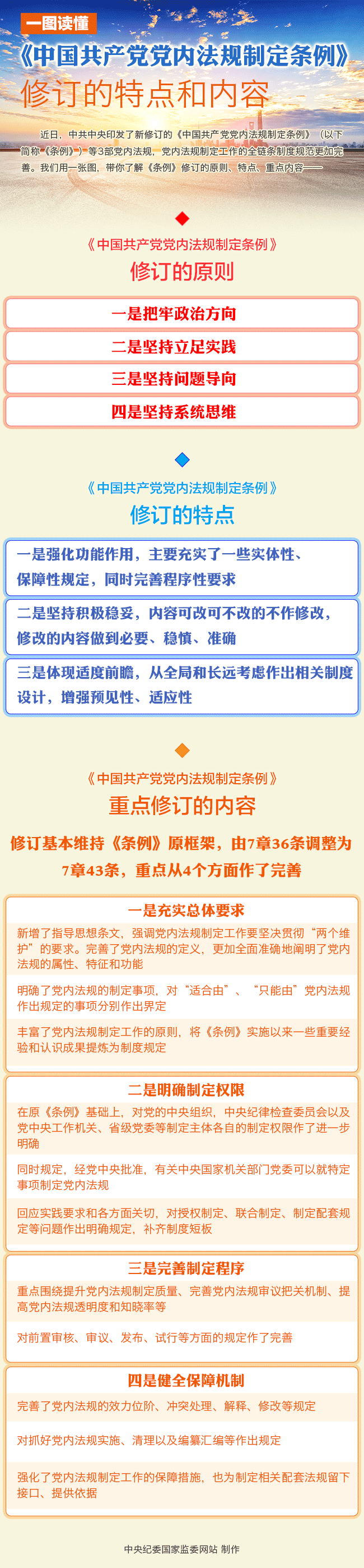 一图读懂 | 《中国共产党党内法规制定条例》修订的特点和内容