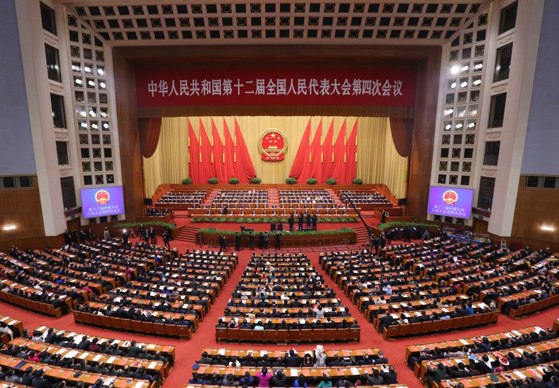 9时48分,张德江宣布:中华人民共和国第十二届全国人民代表大会第四次会议闭幕。大会在雄壮的国歌声中结束。