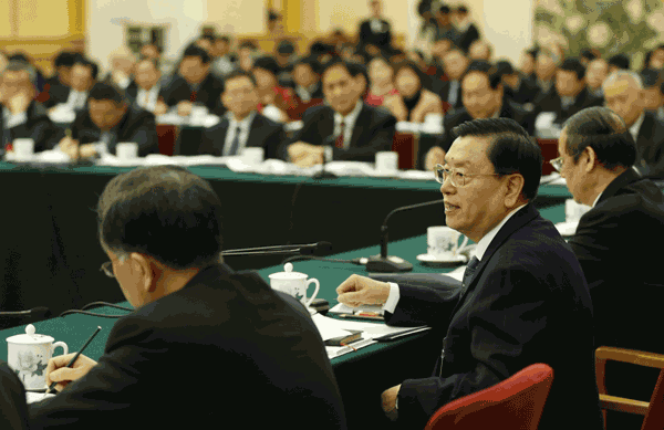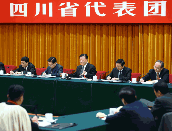 3月7日,中共中央政治局常委、中央书记处书记刘云山参加十二届全国人大四次会议四川代表团的审议。新华社记者丁海涛摄