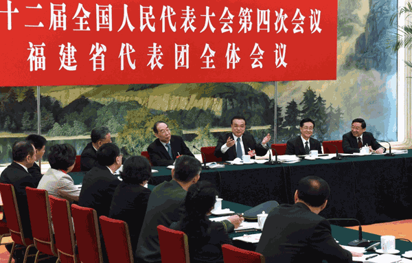 3月7日,中共中央政治局常委、国务院总理李克强参加十二届全国人大四次会议福建代表团的审议。新华社记者饶爱民摄