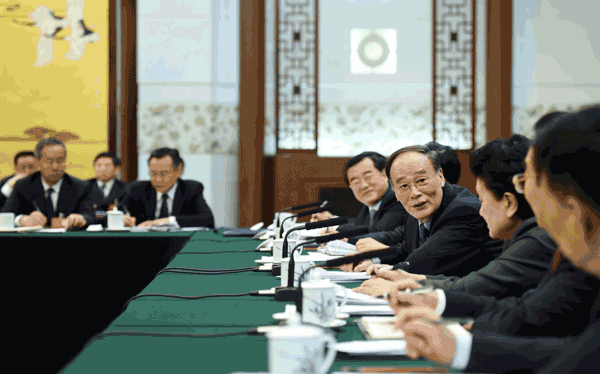 王岐山在河北代表团参加审议。在赵克志、张庆伟、郭建仁等代表发言后,王岐山指出,实现中华民族伟大复兴,关键在加强党的领导。执政党就要讲政治,大局本身就是政治,要始终做到尊崇党章,讲政治、讲大局,讲核心、讲看齐。我们党以经济建设为中心、坚持发展是第一要务,不断满足人民日益增长的物质文化需要,体现的正是党的宗旨,这是最大的政治。没有离开政治的经济,也没有离开经济的政治。要厚植党执政的政治基础,把人民高兴不高兴、满意不满意、答应不答应作为检验工作的标准,把中央精神和本地区本部门实际结合起来,发挥关键少数的作用,挺直腰板、充满自信,维护好最广大人民群众的根本利益,把“五位一体”建设和党的建设的责任一级级压下去、落实到位。