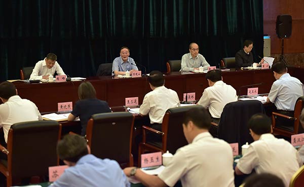 7月8日至10日,中共中央政治局常委、中央纪委书记王岐山在陕西调研,并主持召开部分省区党委书记、纪委书记座谈会。这是9日,王岐山在榆林市主持召开部分省区党委书记、纪委书记座谈会并讲话。(新华社记者 李涛 摄)