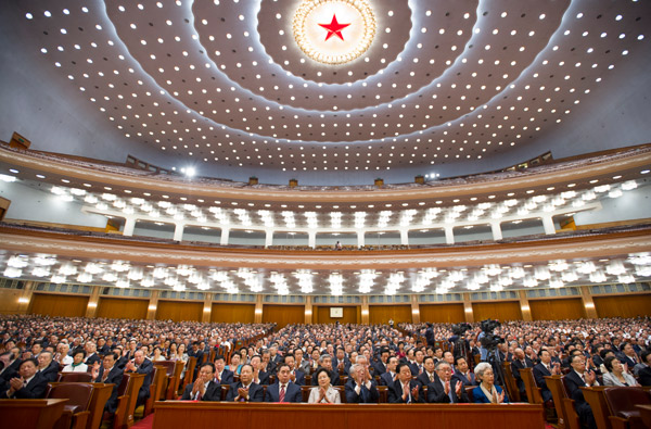 习近平、李克强、张德江、俞正声、刘云山、王岐山、张高丽等出席大会。新华社记者 刘卫兵 摄
