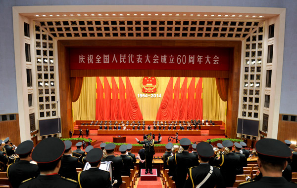 9月5日,庆祝全国人民代表大会成立60周年大会在北京人民大会堂举行。新华社记者 张铎 摄