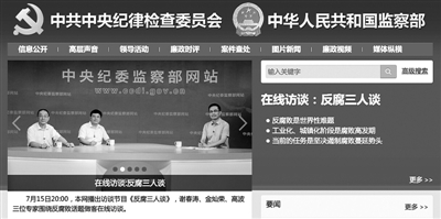 本报北京7月15日电 (记者姜洁)“足球是公认的‘第一运动’,却牵扯到非常严重的腐败问题。”“小的制度可能会带来大的变化,所谓八项规定改变中国。”……这些生动新颖又意味深长的“金句”,来自中纪委官网的新栏目。7月15日20时,中央纪委监察部网站推出视频访谈节目“反腐三人谈”,邀请中央党校党史教研部主任谢春涛、中国人民大学国际关系学院副院长金灿荣、中国社科院中国廉政研究中心副秘书长高波一同做客在线访谈。这是中央纪委监察部网站首次邀请学者做客在线访谈,并以轻松对话的方式“解码”反腐败问题。