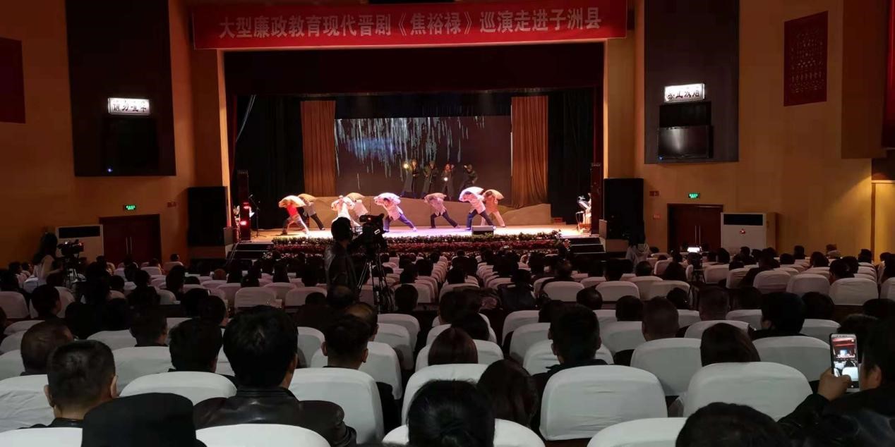 2018年10月25日下午,大型廉政教育现代晋剧《焦裕禄》在子洲县影剧院深情巡演。漫天飞雪,灾民流落,镜头把现场观众带到了二十世纪六十年代的兰考火车站,剧情由此款款铺开。“火车站礼送灾民、买粮救荒、带病抗洪抢险、痛斥浮夸风”等一个个故事情节揪住现场800多名观众的心。