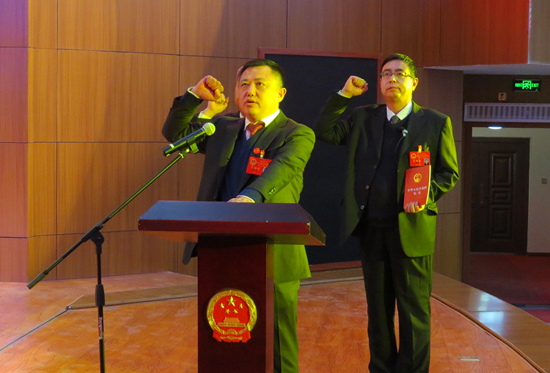 (米脂县监察委员会主任崔飞向宪法庄严宣誓)