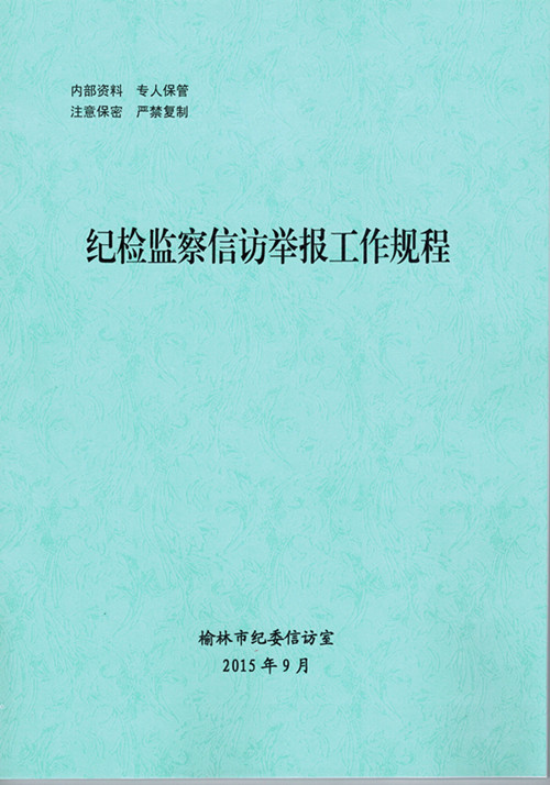 “一规程”,即制定出台《榆林市纪检监察信访举报工作规程》。对来信处理、来访接待、举报电话的接听、网络举报的接受、信访件的处理、督办、回复以及信访工作人员履职等信访举报业务工作的各个环节分别作出详细规定,严格办理程序,明确岗位职责,提出时限要求,着力提高信访举报工作效率和办理质量,确保依法高效处理每一件信访举报,更好地服务于党风廉政建设和反腐败工作。