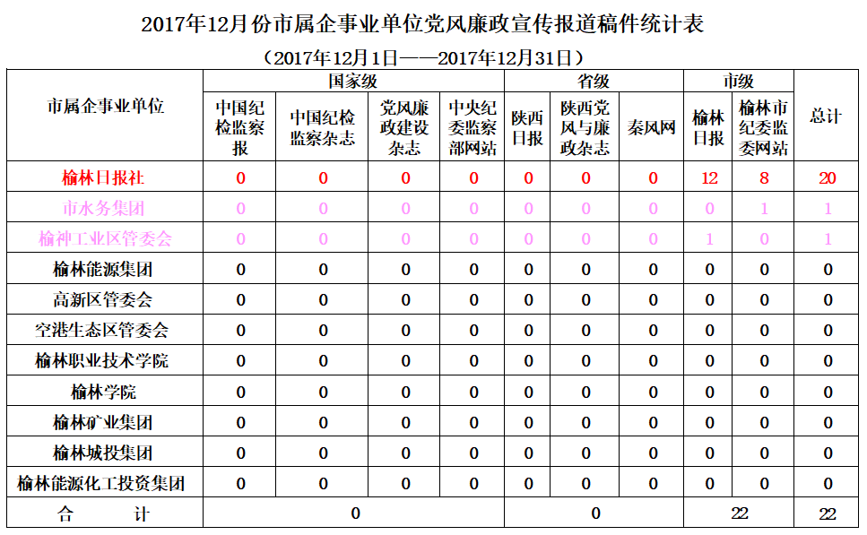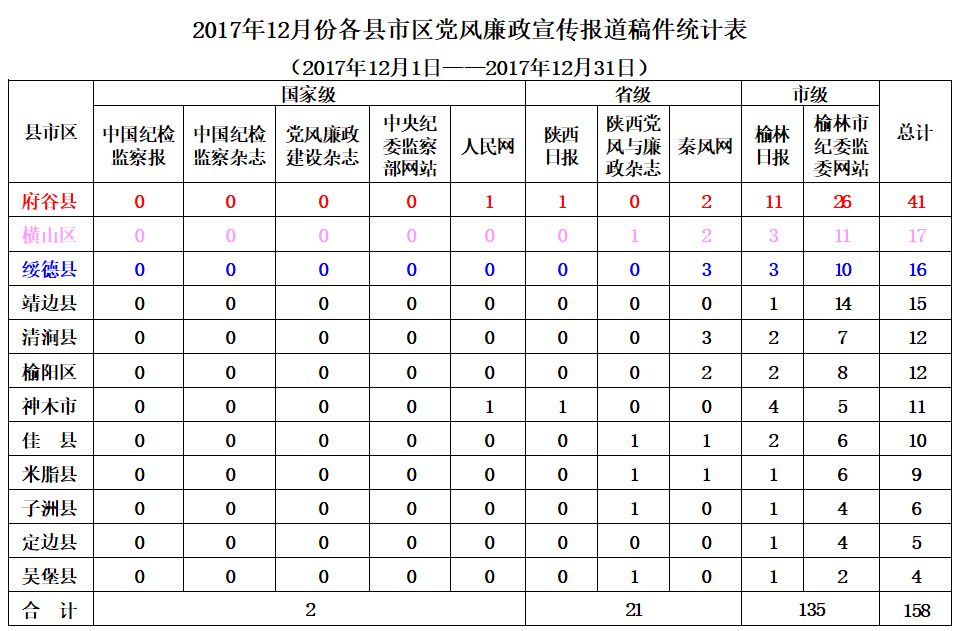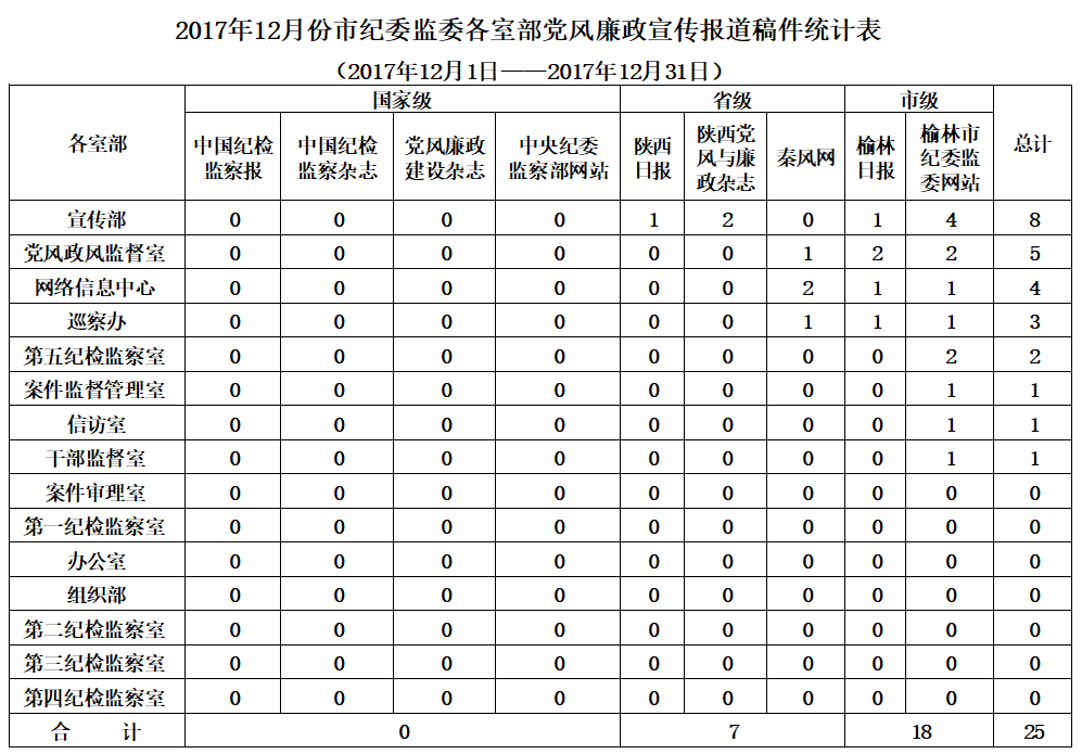 12月份,全市各级纪检监察机关在市级以上新闻媒体共发表稿件211篇,其中:中央级媒体发表2篇,省级媒体发表28篇,市级媒体发表181篇。县区共发表稿件158篇,市属企事业单位发表22篇,市纪委派驻纪检组发表6篇,市纪委监委各室部共发表25篇(稿件采用情况附后)。